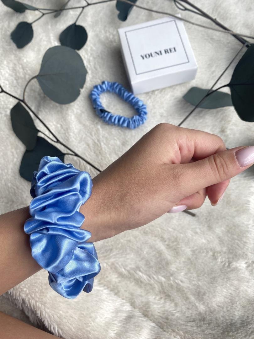 BABY BLUE šilkinė plaukų gumelė