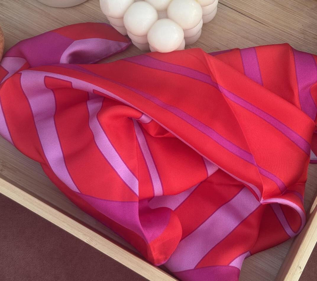 Ryškios raudonos ir rožinės spalvų bangos suteikia energijos, gyvybingumo ir stiliaus – tai akcentas, kuris derės prie bet kokios vienspalvės aprangos.