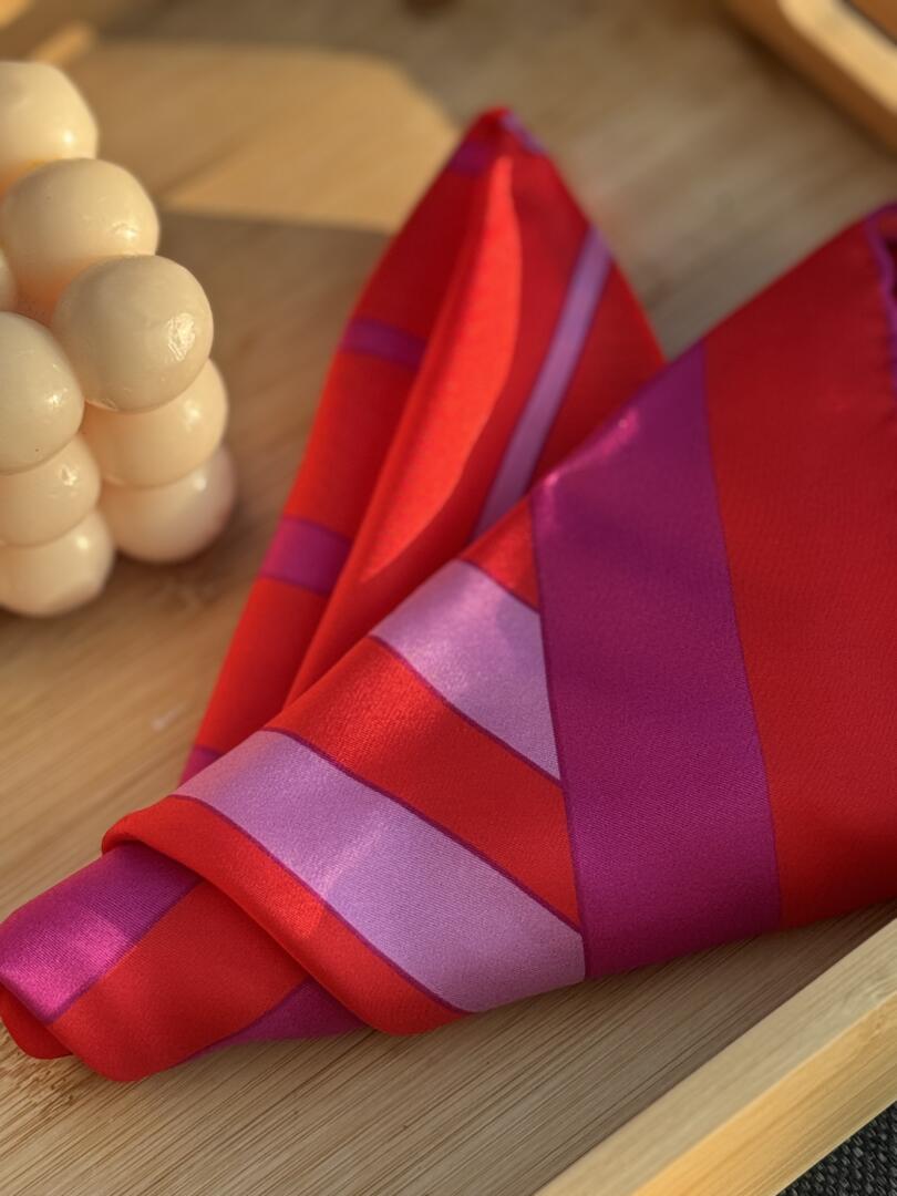 Atraskite išskirtinį aksesuarą, kuris spinduliuoja elegancija ir išskirtinumu. Šios limituoto leidimo šilko skarelės sukurtos bendradarbiaujant su prancūzų dizainere, todėl kiekviena jų – tarsi meno kūrinys.